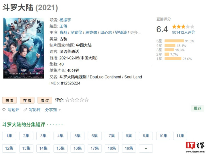 IT之家珍摄到,《斗罗大陆》系列影视作品包括动画和电视剧,这次开播的《斗罗大陆之燃魂战》为真东说念主剧集的第二季。
