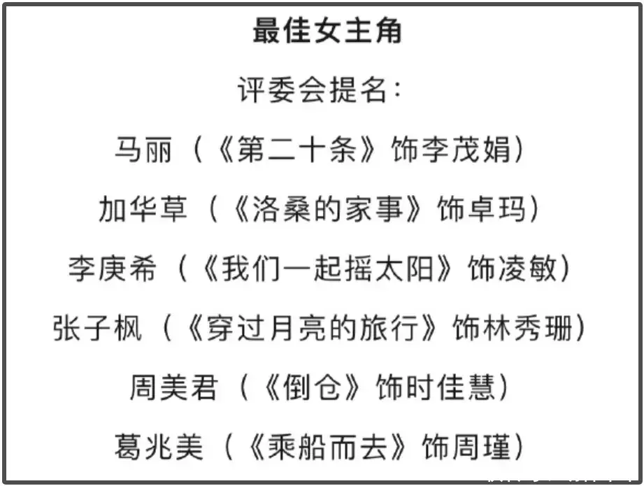 同理,要是赵丽颖拿到了金鸡奖最好女副角,就算有评委加持,马丽和雷喜讯都很难同期获奖了。