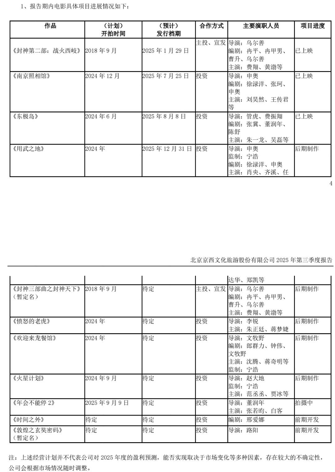另外开yun体育网,北京文化参投的《用武之地》已定档12月31日跨年上映,《封神第三部》《接待来龙餐馆》《大怒的老虎》《火星筹商》在后期制作中,《期间除外》《敦煌之玄奘密码》在前期建树中。
