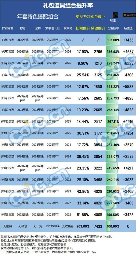 国服新春礼包的试验依然了,本年的年套礼包最大的亮点在于护肩的7技攻宝珠,称呼宠物的属强5~10点的普及,还有C系的红色宠物装备升级(10%→12%)。
