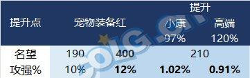 主属性变化是10%攻强→12%攻强。对于不同细节经由的变装普及略有不同,因为基础攻强百分比的不同。不外总体资料误差很小,不错以为普及在0.9%~1%的水平。然而名望扩展了相等多,多了整整210点,翻了一倍还多。