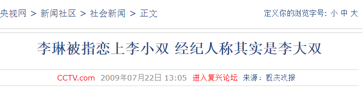 央视网-重庆晚报 2009.7.22 【李琳被指恋上李小双 牙东谈主称其实是李大双】