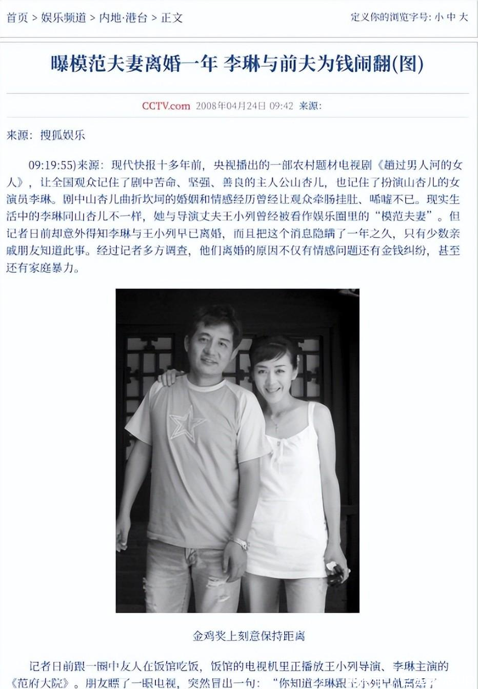 信息起原:搜狐文娱2008.4.24——曝圭臬配偶仳离一年李琳与前夫为钱离散