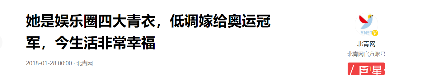 北青网2018.1.28 【她是文娱圈四大青衣,低调嫁给奥运冠军,今生活相配幸福】