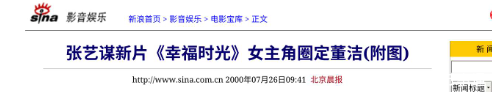 但这还仅仅刚刚运行,2000年,20岁的董洁凭借张艺谋执导拍摄的电影《幸福时光》,