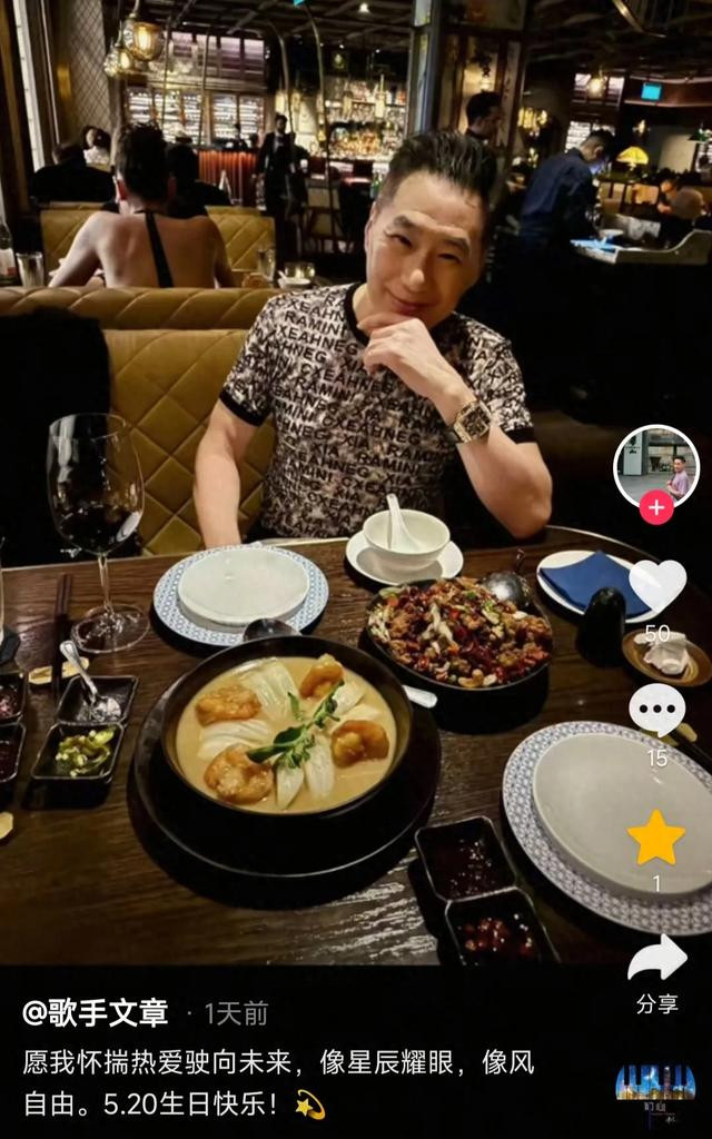 但是就在5月22日,歌手著作也忽视在个东说念主酬酢平台上,共享了我方在新加坡庆祝65岁寿辰的画面。