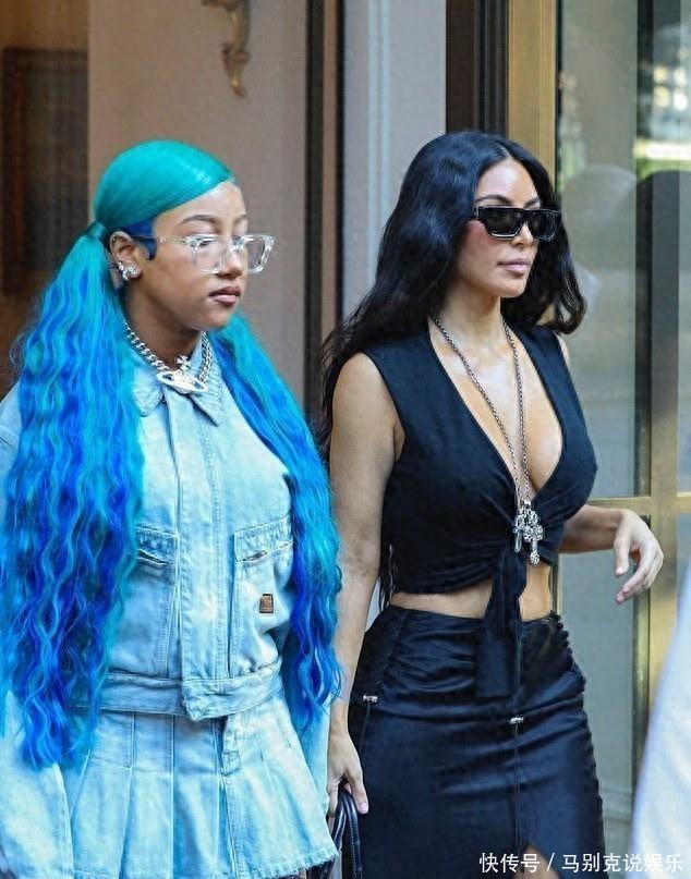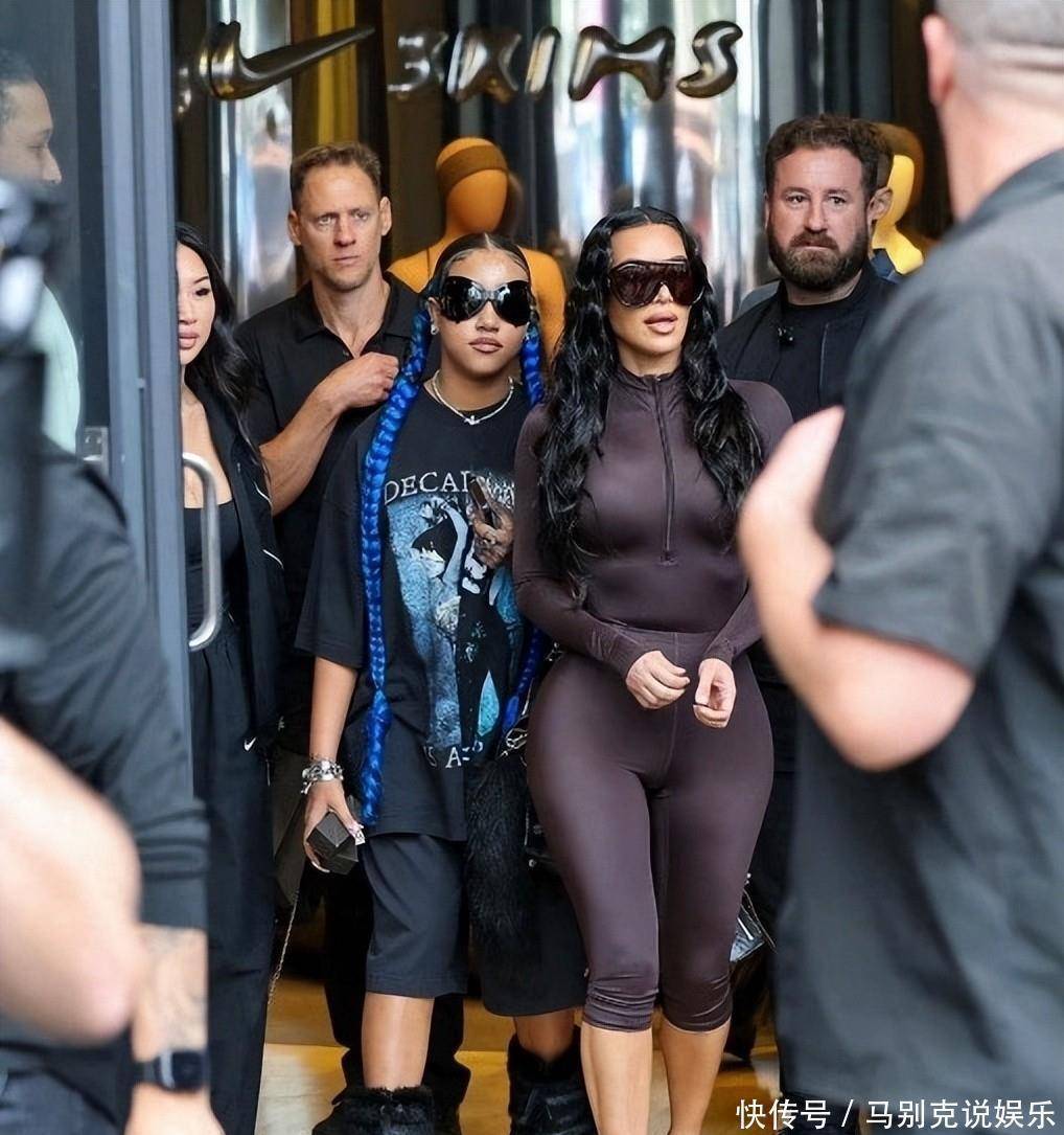 诺丝韦斯特频繁换发型,偶然间发长一刹变长变面孔,说是假发但看着挺真。她脖子上挂着珍珠项链,手指戴着银环。这些荫庇品搭配起来挺怪的,像大东说念主玩cos通常。她爸侃耶当年也可爱穿反季节衣服,当今儿子也这么,嗅觉像某种传承。