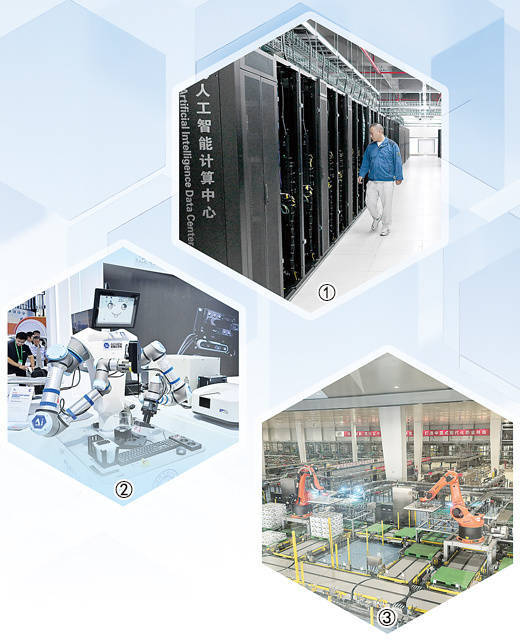 图①:使命主谈主员在安徽省宿州市算力产业园淮海东谈主工智能狡计中心思房检察就业器运转情况。 新华社记者 黄博涵摄 图②:在2025寰宇制造业大会上展示的全经过机器化学家。 程 兆摄(影像中国) 图③:在内蒙古呼和浩特伊利当代聪惠健康谷,东谈主工智能解救自动化分娩线运转。 本报记者 谷业凯摄